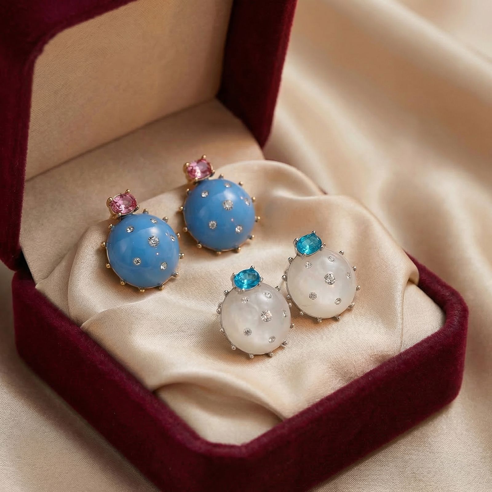 Sometimes less is more. These studs feature a unique geometric cut that plays with light and shadow. Small enough for daily wear but distinct enough to be noticed, they are the definition of “effortless chic” for the busy, modern woman.